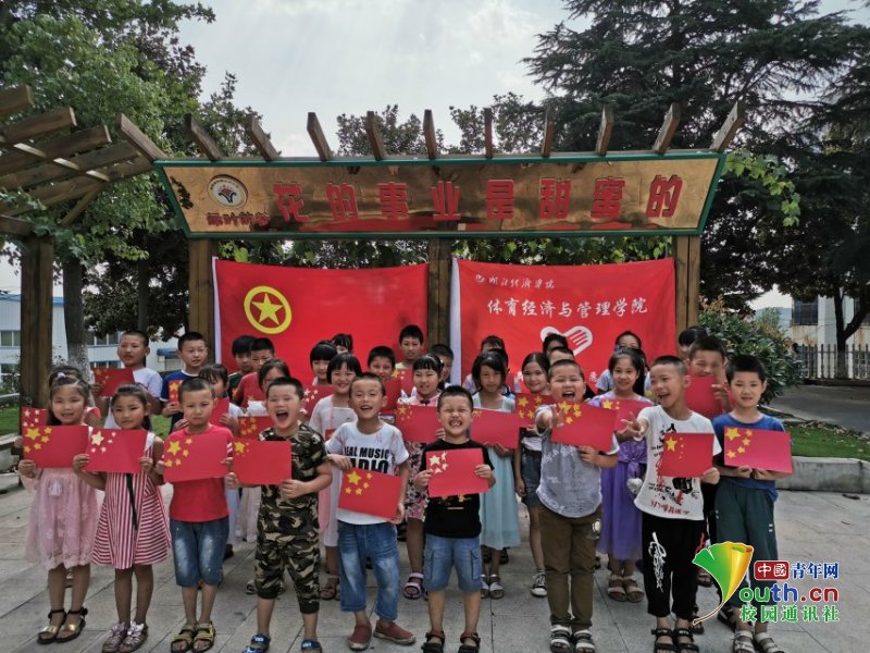 图为小朋友们举着手工课制作的小国旗拍照 中国青年网通讯员 姚祥锦 摄