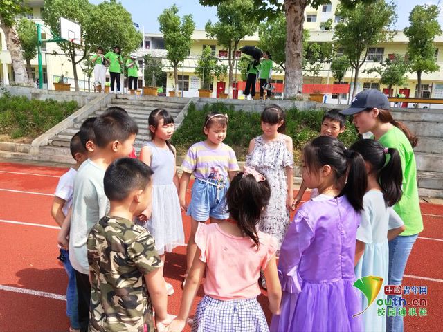 第一节的素拓课,志愿者正在带领小朋友们破冰,进行团队建设,熟悉彼此,增进感情。中国青年网通讯员 陈沙沙 摄