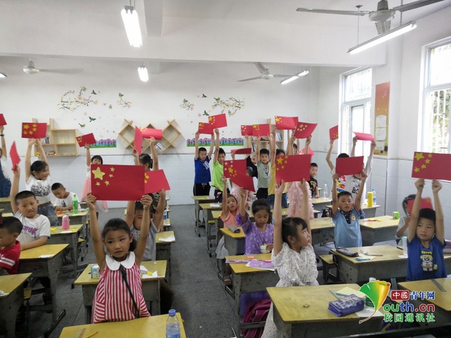 小朋友们高举手工课的成果,稚嫩的脸庞上洋溢着对祖国美好的祝福。中国青年网通讯员 姚祥锦 摄