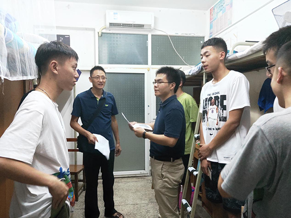 9月7日,新生报到第一天。你们拿着录取通知书在相应位置报到,带着大包小包的行李入住了即将生活4年的寝室,遇见了来自五湖四海的新室友,又到体育馆领取了军训的服装。你们是否还记得当时的自己是怀着怎样的一个心态,是对即将步入大学生活的欣喜,还是能够结交更多老师、同学的激动,亦或是踏入一个崭新的环境,离开父母的不舍?当天晚上,辅导员、班主任、学生党员和团学组织干部又来到你们每一个人的寝室,关心问候你们,从学习状态到生活起居。
