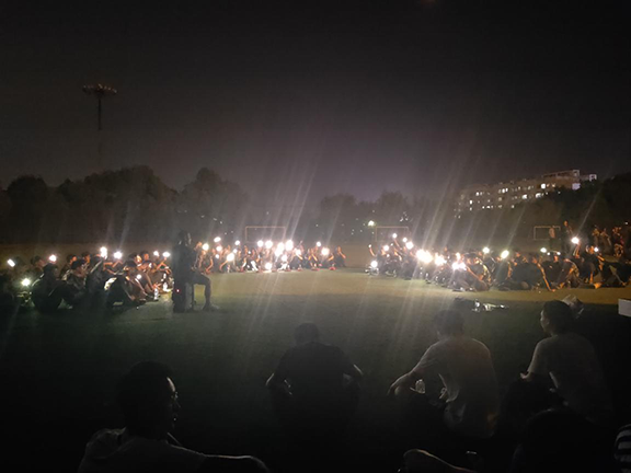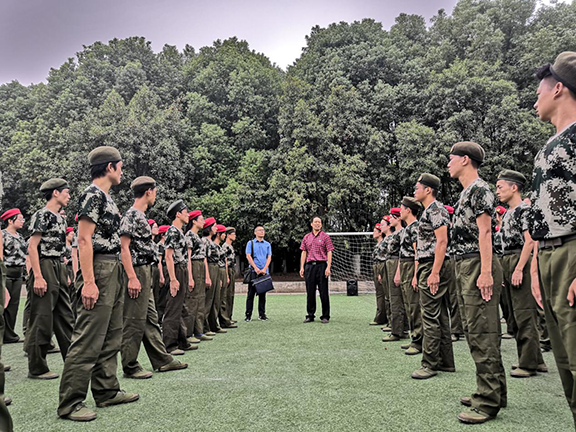 后期,你们开始了用汗水与欢笑浸泡的军训。阳光下,笔挺的军姿,整齐划一的齐步走,正步走,在这一时期恰逢中秋节,辅导员、班主任、团学组织的学长学姐与你们在76net必赢官网度过了第一个节假日。手机的闪光灯仿佛融入今晚的夜色中与空中的明月交相辉映,歌声、笑声、欢呼声在每个人的耳边此起彼伏,一直抵达今晚的月亮,载着厚重的思念也乘着美好的祝愿。这时,军训阶段已在不知不觉中走过了一半。在离军训回报演出越来越近的时候,学院党委书记王厚生与辅导员徐盛富老师来到你们的训练场地看望你们,并勉励你们“发挥体育人特长,展示体育学院风采。”