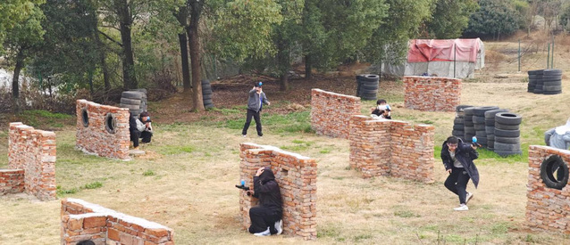 在越野项目结束后,紧张激烈的CS真人对战火热开场。同学们迅速分组,制定战术,一场模拟的“硝烟之战”在营地的丛林间打响。大家穿梭在掩体之中,巧妙配合,时而隐蔽狙击,时而冲锋陷阵,在枪林弹雨般的氛围中,团队协作与默契得到了充分锻炼。