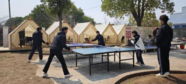 烧烤环节结束后,大家自由地选择娱乐项目。喜欢唱歌的同学在展台尽情高歌,用歌声表达青春的美好;爱好棋牌的同学则围坐在桌前,在思维碰撞中享受休闲体育项目的乐趣,还有些的同学则在台球桌和乒乓球桌前切磋技艺,精准的击球和巧妙的走位,展现出高超的水平;欢声笑语回荡在营地的每个角落,将活动的氛围推向高潮。