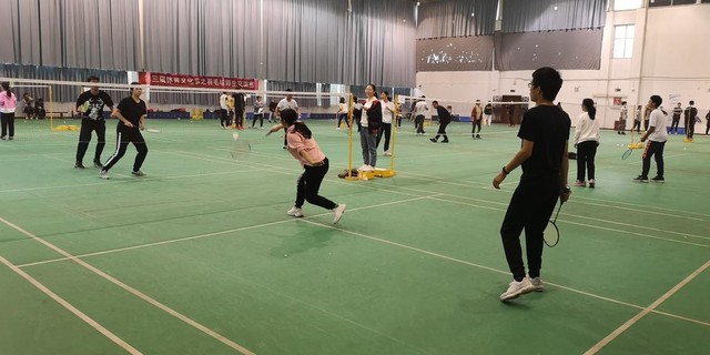 开赛前,选手纷纷开始拉球热身,热情高涨。选手检录完成后,比赛正式开始。球场上老师和学生们相互交流、默契配合。比赛从上午持续到下午,选手们仍激情满满,彰显出对羽毛球运动的热爱。