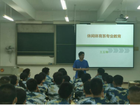 王老师围绕“什么是休闲体育?休闲体育培养什么样的人?如何培养人?同学们可以从那些方面努力?”等新生们关心的问题进行全面细致的解答,让新生更加深入的了解到休闲体育这个专业,对专业前景抱有信心。王老师还与新生积极互动交流,对学生提出的问题耐心解答,分享他的经验。