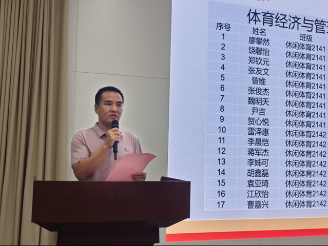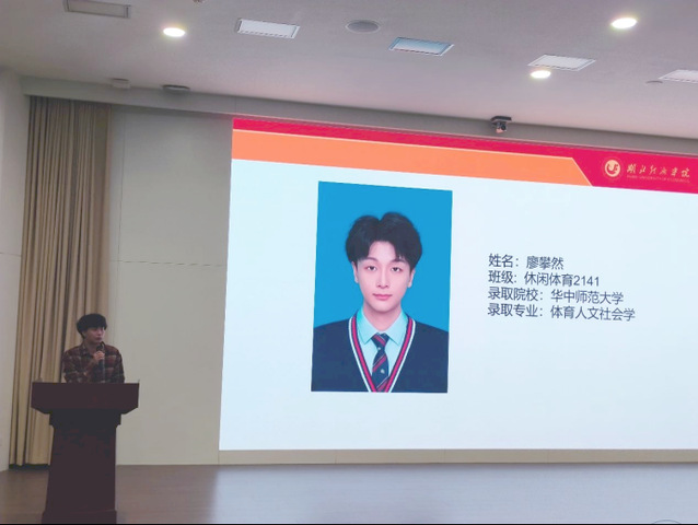 随后,2025届考研升学学生代表休闲体育2141班廖攀然发言。他首先对学院、老师、同学的支持表示感谢,建议学弟学妹们早立目标,密切关注心仪院校招生政策,制定个性化学习计划,并以坚韧不拔的毅力严格执行。他深情寄语学弟学妹们:“愿大家执笔为剑,披荆斩棘,一战成硕,不负青春!”