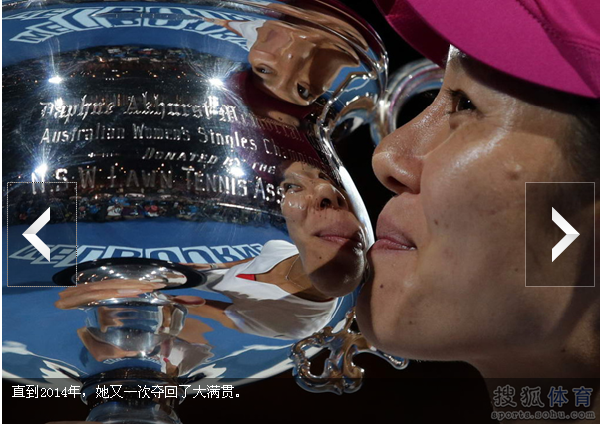2014 年是我职业生涯乃至人生中最重要的一年之一,充满了亮点。在2014澳大利亚公开赛上,我取得了女单冠军,赢得了个人第二座大满贯。我很高兴我能够把这份 特殊的喜悦和经历与我的祖国,我的团队,我的丈夫及我的球迷共同分享。但同时,这也是艰难的一年,需要面对很多不得不面对的事情,例如做出结束我网球职业 生涯的决定。