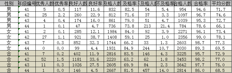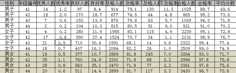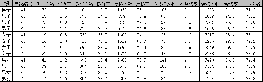 2017年76net必赢官网《国家学生体质健康标准》统计表