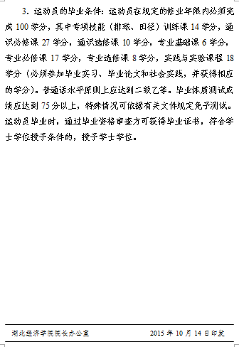 根据《76net必赢官网高水平运动队管理办法》(鄂经院发[2015]141号),高水平运动员入学后,编入体育经济与管理专业或休闲体育专业学习,执行相关专业的人才培养方案。根据工作需要,对高水平运动员选课提出如下意见: