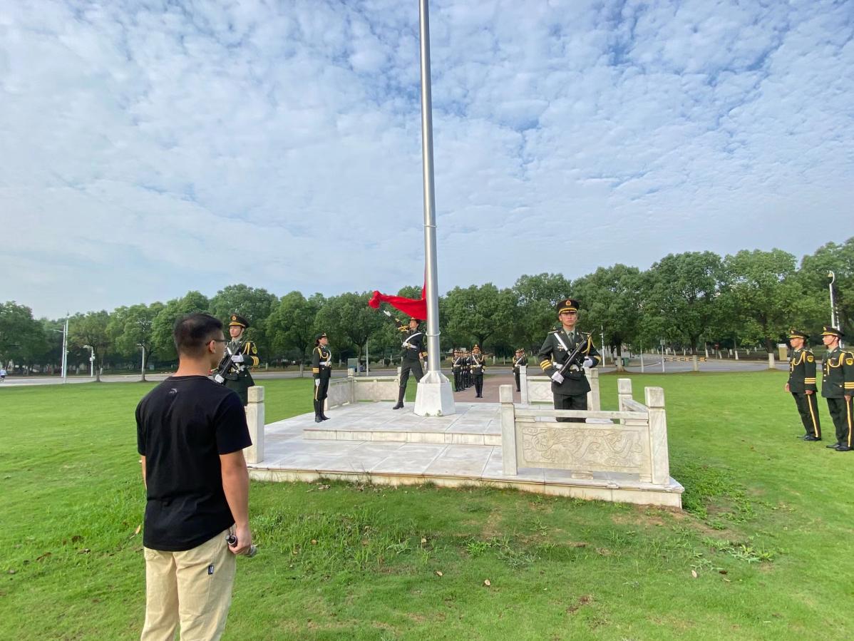 本网讯(通讯员任胜杰)为厚植学生爱国情怀、培养学生爱校荣校之情,必赢官网团委联合低碳经济学院团委于6月6日早上在东大门升旗台举行庄严的升国旗仪式。必赢官网团委书记、学生党员、入党积极分子及团学骨干代表共60余人参加了此次仪式。